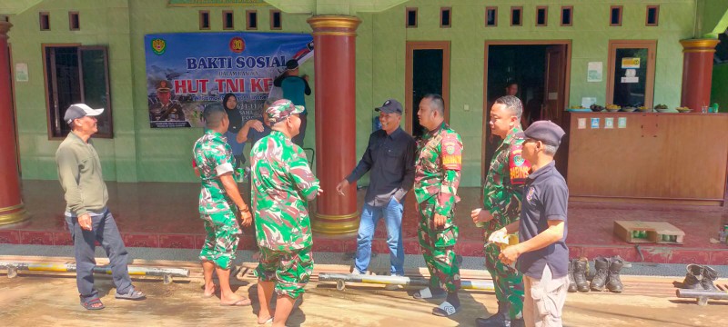 Melaksanakan kegiatan Bakti Sosial (Baksos) renovasi dan bersih-bersih di Masjid Jamie Nurrul Mukaomah,ini menjadi wujud nyata sinergi antara TNI, Masyarakat, dan sektor swasta, dengan berkolaborasi bersama Managemen PT. Sari Enesis Indah.